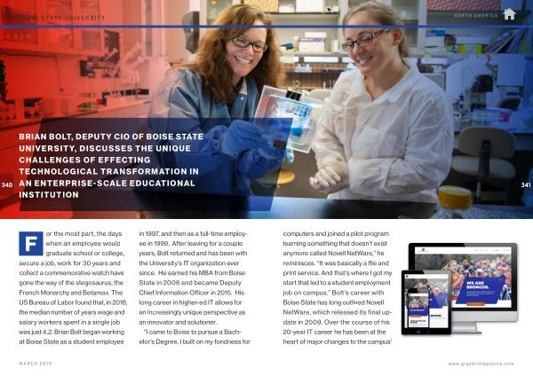BRIAN BOLT , DEPUTY CIO OF BOISE STATE UNIVERSITY , DISCUSSES THE UNIQUE CHALLENGES OF EFFECTING TECHNOLOGICAL TRANSFORMATION IN AN ENTERPRISE-SCALE EDUCATIONAL INSTITUTION