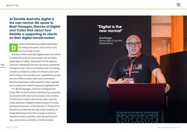 At Deloitte Australia , digital is the new normal . We spoke to Brad Flanagan , Director of Digital and Cyber Risk about how Deloitte is supporting its clients on their digital transformation