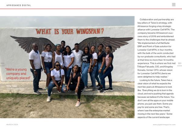 Collaboration and partnership are key pillars of Taiwo ’ s strategy , with Afrissance forging a key strategic alliance with Lonestar Cell MTN . The company became Afrissance ’ s success story of 2019 and emboldened them to the challenges that lie ahead . “ We implemented a full NetSuite ERP and Point of Sale solution for Lonestar Cell MTN , in four months , with the bulk of the work conducted by our graduate consultants , who had at that time no more than 14 months experience . This is where we first met Titilope Fakuade , CIO , and Kingsley Konadu , former CFO , whose vision for Lonestar Cell MTN Liberia we were delighted to help realise .”