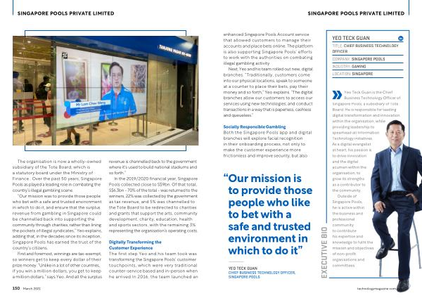 YEO TECK GUAN CHIEF BUSINESS TECHNOLOGY OFFICER , SINGAPORE POOLS
