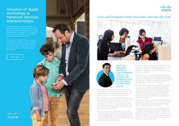 Cisco has been proud to partner with Singapore Pools , helping them enhance their data center infrastructure . They have pivoted well to a digital-first world and we were proud to help them develop their various digital channels .