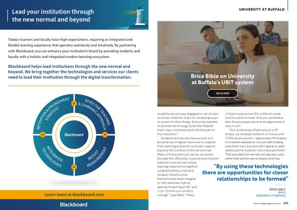 Blackboard helps lead institutions through the new normal and beyond . We bring together the technologies and services our clients need to lead their institution through the digital transformation .