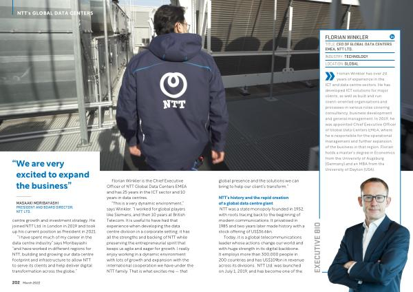 Florian Winkler has over 20 years of experience in the ICT and data centre sectors . He has developed ICT solutions for major clients , as well as built and run client-oriented organisations and processes in various roles covering consultancy , business development and general management . In 2019 , he was appointed Chief Executive Officer of Global Data Centers EMEA , where he is responsible for the operational management and further expansion of the business in that region . Florian holds a master ’ s degree in Economics from the University of Augsburg ( Germany ) and an MBA from the University of Dayton ( USA ). global presence and the solutions we can bring to help our client ’ s transform .”