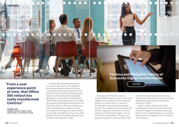 Working with Microsoft , Centrica implemented Windows 10 across its entire organisation coupled with the Evergreen solution to ensure that it is never too far behind the latest operating system version . The escape from incremental and periodic upgrades extends to Centrica ’ s embrace of cloud technologies , such as Office 365 , and OneDrive . “ From a user experience point of view , that Office 365 rollout has really transformed Centrica . We have the full suite and we ' re constantly adding new applications and features ,” said Rose in 2019 .