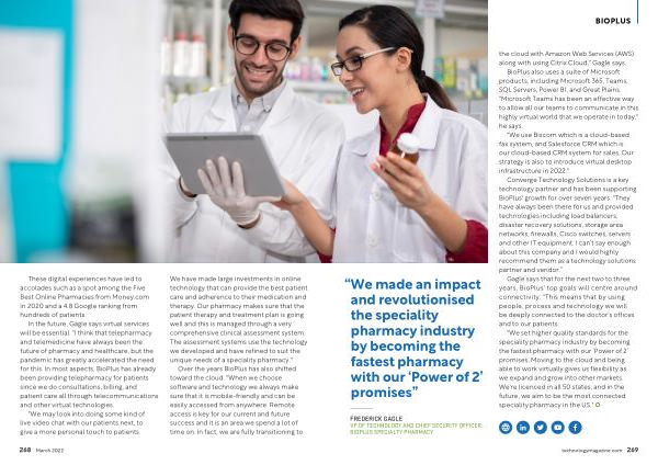 FREDERICK GAGLE VP OF TECHNOLOGY AND CHIEF SECURITY OFFICER , BIOPLUS SPECIALTY PHARMACY technologymagazine . com 269