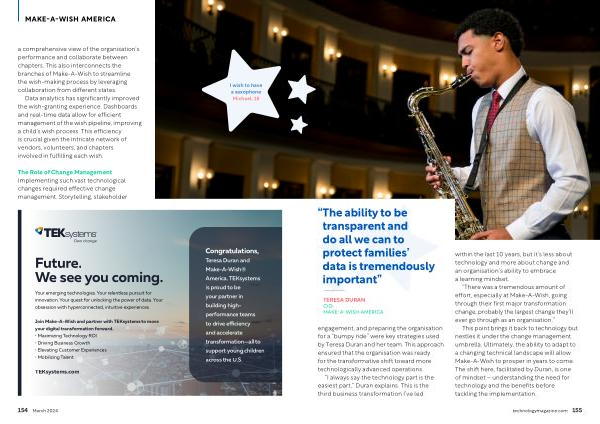 Teresa Duran and Make-A-Wish ® America . TEKsystems is proud to be your partner in building highperformance teams to drive efficiency and accelerate transformation — all to support young children across the U . S .