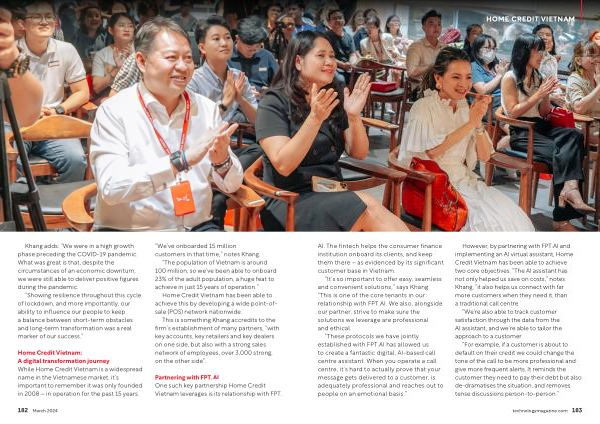 However , by partnering with FPT . AI and implementing an AI virtual assistant , Home Credit Vietnam has been able to achieve two core objectives . “ The AI assistant has not only helped us save on costs ,” notes Khang , “ it also helps us connect with far more customers when they need it , than a traditional call centre .