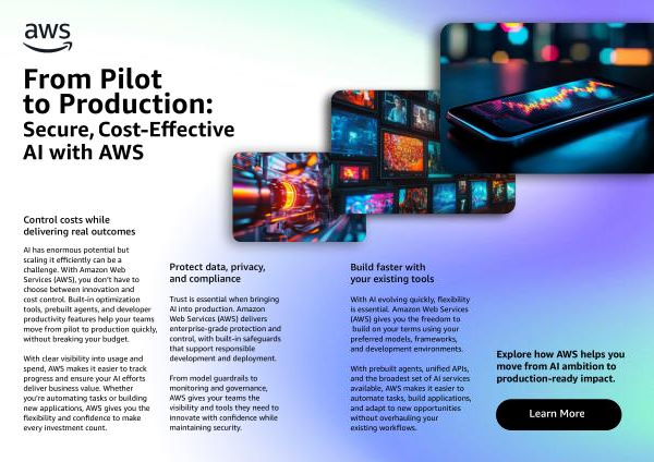 AI has enormous potential but scaling it efficiently can be a challenge. With Amazon Web Services( AWS), you don’ t have to choose between innovation and cost control. Built-in optimization tools, prebuilt agents, and developer productivity features help your teams move from pilot to production quickly, without breaking your budget.
