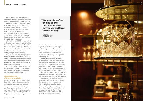 Within this context, Phil’ s objective is to embed payment capabilities directly into Birchstreet’ s procurement platform.“ This has been a chance to bring best practices from all sizes and scales into a vertical that has a definite need to modernise and digitise payments,” he says.