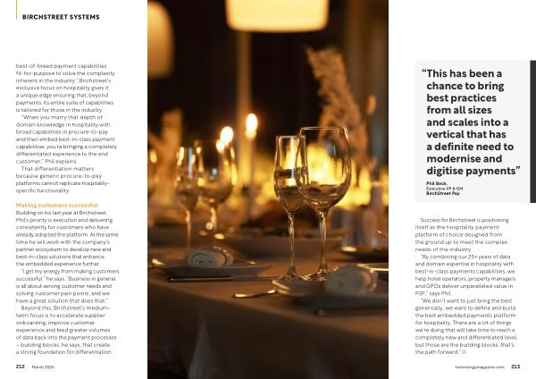 best-of-breed payment capabilities fit-for-purpose to solve the complexity inherent in the industry.” Birchstreet’ s exclusive focus on hospitality gives it a unique edge ensuring that, beyond payments, its entire suite of capabilities is tailored for those in the industry.