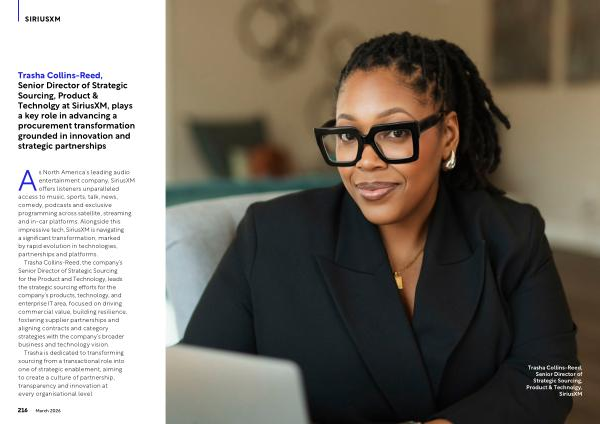 Trasha Collins-Reed, Senior Director of Strategic Sourcing, Product & Technolgy at SiriusXM, plays a key role in advancing a procurement transformation grounded in innovation and strategic partnerships
