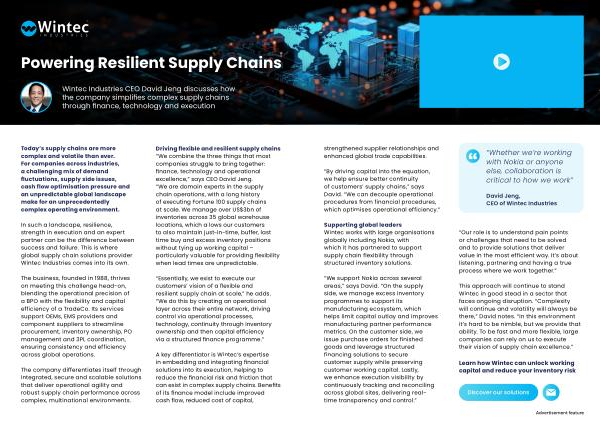 In such a landscape, resilience, strength in execution and an expert partner can be the difference between success and failure. This is where global supply chain solutions provider Wintec Industries comes into its own.