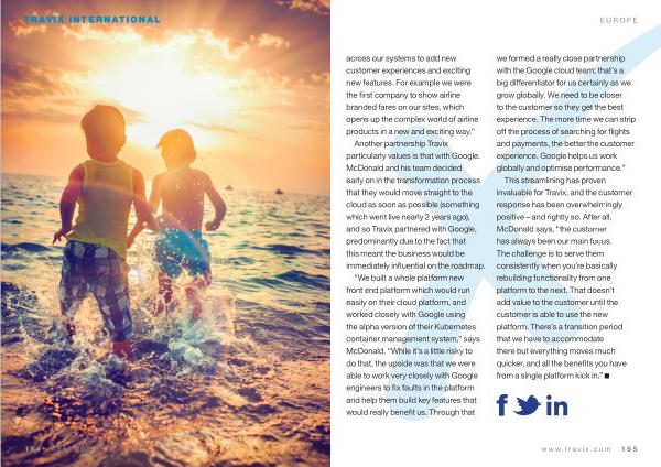 This streamlining has proven invaluable for Travix , and the customer response has been overwhelmingly positive – and rightly so . After all , McDonald says , “ the customer has always been our main focus . The challenge is to serve them consistently when you ’ re basically rebuilding functionality from one platform to the next . That doesn ’ t add value to the customer until the customer is able to use the new platform . There ’ s a transition period that we have to accommodate there but everything moves much quicker , and all the benefits you have from a single platform kick in .” www . travix . com 165