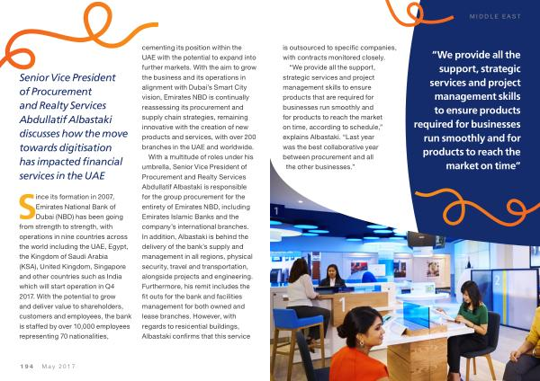 “ We provide all the support , strategic services and project management skills to ensure products that are required for businesses run smoothly and for products to reach the market on time , according to schedule ,” explains Albastaki . “ Last year was the best collaborative year between procurement and all the other businesses .”