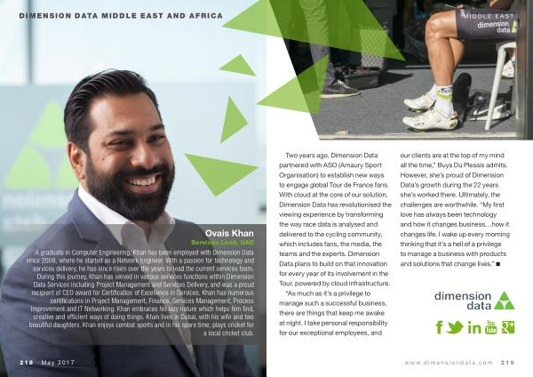 A graduate in Computer Engineering , Khan has been employed with Dimension Data since 2008 , where he started as a Network Engineer . With a passion for technology and services delivery , he has since risen over the years to lead the current services team . During this journey , Khan has served in various services functions within Dimension Data Services including Project Management and Services Delivery , and was a proud recipient of CEO award for Certification of Excellence in Services . Khan has numerous certifications in Project Management , Finance , Services Management , Process Improvement and IT Networking . Khan embraces his lazy nature which helps him find , creative and efficient ways of doing things . Khan lives in Dubai , with his wife and two beautiful daughters . Khan enjoys combat sports and in his spare time , plays cricket for a local cricket club .