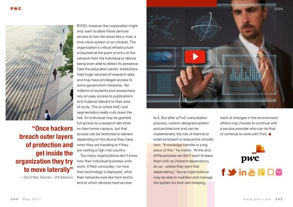USA to it . But after a PwC consultation process , custom designed system and architecture and can be implemented , the risk of internal or external breach is reduced to virtually zero . “ Knowledge transfer is a big piece of this ,” he insists . “ At the end of the process we don ’ t want to leave them with an inherent dependency on us - unless they want that dependency .” Some organizations may be able to maintain and manage the system on their own keeping