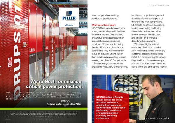 At Piller we are proud to support NEXTDC ’ s national network of next-generation data centres with an award-winning combination of our Diesel Rotary Uninterruptible Power Supply ( DRUPS ) and our unique Isolated-Parallel Bus solution . The first of its kind in the Asia-Pacific region , it was instrumental in NEXTDC being awarded the Uptime Institute ’ s 2015 Brill Award for Efficient IT .