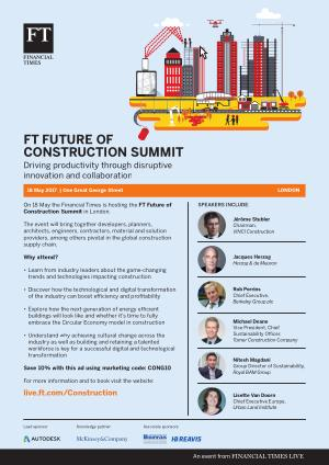 On 18 May the Financial Times is hosting the FT Future of Construction Summit in London .