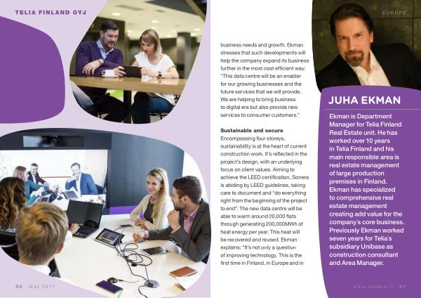 Sustainable and secure Encompassing four storeys , sustainability is at the heart of current construction work . It ’ s reflected in the project ’ s design , with an underlying focus on client values . Aiming to achieve the LEED certification , Sonera is abiding by LEED guidelines , taking care to document and “ do everything right from the beginning of the project to end ”. The new data centre will be able to warm around 20,000 flats through generating 200,000MWh of heat energy per year . This heat will be recovered and reused . Ekman explains : “ It ’ s not only a question of improving technology . This is the first time in Finland , in Europe and in