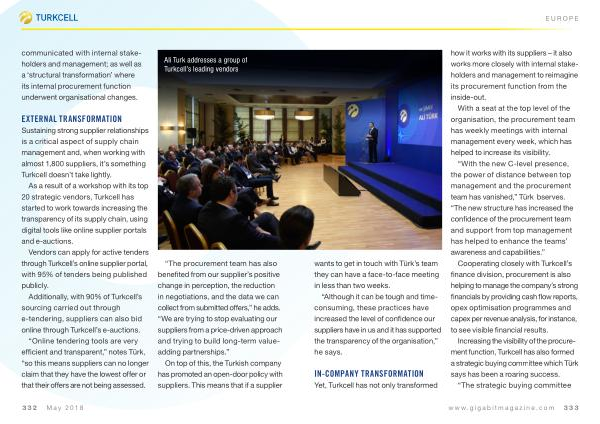 Ali Turk addresses a group of Turkcell ’ s leading vendors