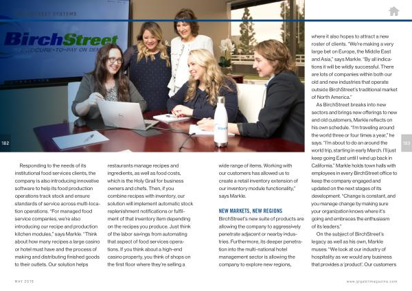 Responding to the needs of its institutional food services clients , the company is also introducing innovative software to help its food production operations track stock and ensure standards of service across multi-location operations . “ For managed food service companies , we ’ re also introducing our recipe and production kitchen modules ,” says Markle . “ Think about how many recipes a large casino or hotel must have and the process of making and distributing finished goods to their outlets . Our solution helps restaurants manage recipes and ingredients , as well as food costs , which is the Holy Grail for business owners and chefs . Then , if you combine recipes with inventory , our solution will implement automatic stock replenishment notifications or fulfilment of that inventory item depending on the recipes you produce . Just think of the labor savings from automating that aspect of food services operations . If you think about a high-end casino property , you think of shops on the first floor where they ’ re selling a