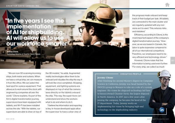 Jeremy Citone After finishing his second Master ’ s degree in Computer Science in California , Jeremy was head hunted by the INOCEA group in Monaco to take on a role of a system engineer . His vision for shipyard technology led him to Inocea-owned Chantier Davie , the largest shipyard in North America . In 2017 , just a few years after joining the company , he became the head of the IT department . Today , Jeremy works on implementing his vision by bringing high-end technology to the shipbuilding industry