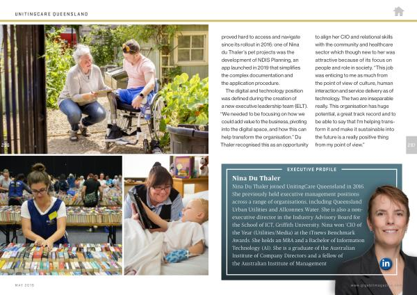 Nina Du Thaler joined UnitingCare Queensland in 2016 . She previously held executive management positions across a range of organisations , including Queensland Urban Utilities and Allconnex Water . She is also a nonexecutive director in the Industry Advisory Board for the School of ICT , Griffith University . Nina won ‘ CIO of the Year ( Utilities / Media ) at the iTnews Benchmark Awards . She holds an MBA and a Bachelor of Information Technology ( AI ). She is a graduate of the Australian Institute of Company Directors and a fellow of the Australian Institute of Management