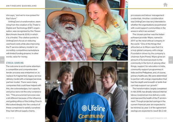 processes and labour management credentials . Another consideration was UnitingCare was very interested in whether the organisations we partnered with could support communities in the areas in which we worked .”