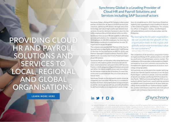 PROVIDING CLOUD HR AND PAYROLL SOLUTIONS AND SERVICES TO LOCAL , REGIONAL AND GLOBAL ORGANISATIONS .