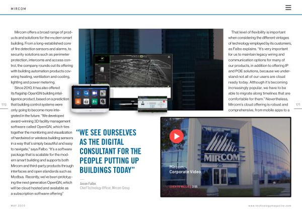 Since 2010 , it has also offered its flagship OpenGN building intelligence product , based on a prediction that building control systems were only going to become more integrated in the future . “ We developed award-winning 3D facility management software called OpenGN , which ties together the monitoring and visualization of hardwired or wireless building sensors in a way that ’ s simply beautiful and easy to navigate ,” says Falbo . “ It ’ s a software package that is scalable for the modern smart building and supports both Mircom and third-party products through interfaces and open standards such as Modbus . Recently , we ’ ve been prototyping the next generation OpenGN , which will be cloud hosted and available as a subscription software offering ”