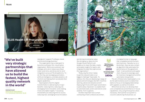 MARIAM SAAD DIRECTOR OF PROCUREMENT , IT & TECHNOLOGY SERVICES , TELUS standpoint I support IT software , cloud , and the technology business ."
