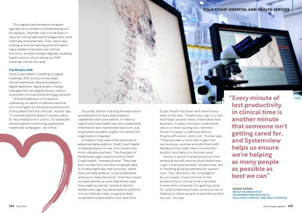 In order to fully unlock the potential of advanced data analytics , Gold Coast Health is trading heavily on one of its closest and most-valuable partners . “ The founders of Healthcare Logic used to work for Gold Coast Health ,” remarks Kumar . “ They had this concept for a tool that visualised data in a meaningful way that clinicians , rather than just data analysts , could understand and use to make decisions .” Over the course of a partnership so close that Kumar says they might as well be “ joined at the hip ”, Healthcare Logic has developed its platform into an internationally recognised data visualisation and analytics tool , and Gold
