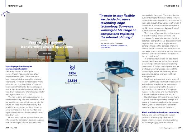 AI will enable intuitive airport monitoring Delving into some of Fraport ’ s current solutions , the company ’ s Frankfurtbased airport leverages intuitive systems for tracking baggage around the site