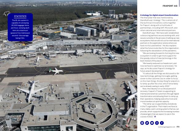 “ The ramp-up is supported by everybody in the IT organisation . That means we have as many stable , well-running systems that we can provide , which supports the increasing number of passengers that we expect to see in the course of 2022 .” technologymagazine . com 211