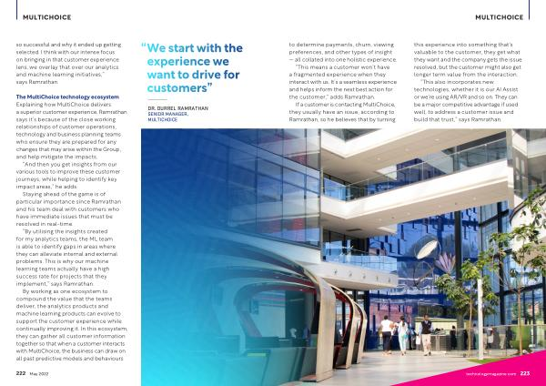 so successful and why it ended up getting selected . I think with our intense focus on bringing in that customer experience lens , we overlay that over our analytics and machine learning initiatives ,” says Ramrathan .
