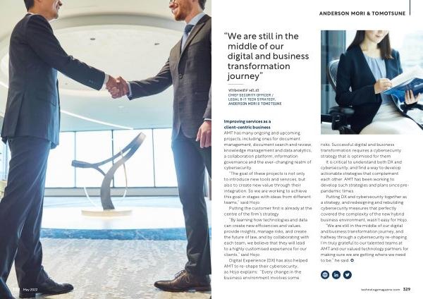 Digital Experience ( DX ) has also helped AMT to re-shape their cybersecurity , as Hojo explains : “ Every change in the business environment involves some