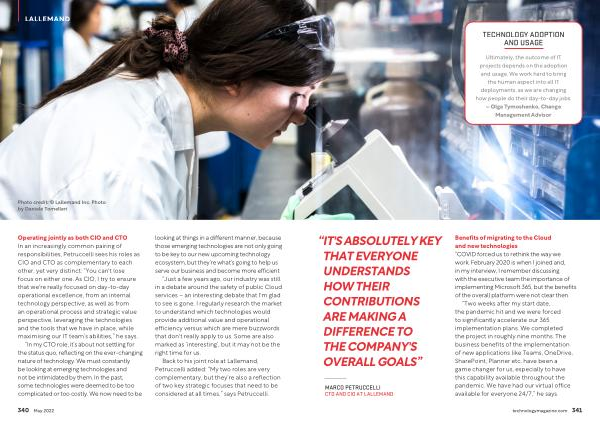 Operating jointly as both CIO and CTO In an increasingly common pairing of responsibilities , Petruccelli sees his roles as CIO and CTO as complementary to each other , yet very distinct : “ You can ' t lose focus on either one . As CIO , I try to ensure that we ' re really focused on day-to-day operational excellence , from an internal technology perspective , as well as from an operational process and strategic value perspective , leveraging the technologies and the tools that we have in place , while maximising our IT team ’ s abilities ,” he says .