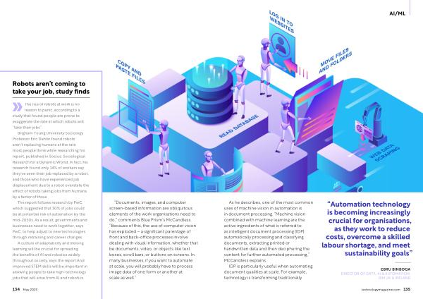 “ Documents , images , and computer screen-based information are obliquitous elements of the work organisations need to do ,” comments Blue Prism ’ s McCandless . “ Because of this , the use of computer vision has exploded – a significant parentage of front and back-office processes involve dealing with visual information , whether that be documents , video , or objects like text boxes , scroll bars , or buttons on screens . In many businesses , if you want to automate at scale , you will probably have to process image data of one form or another at scale as well .”
