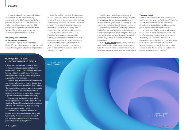 The road ahead Franklin describes QUALCO ’ s growth plans for the next five years as “ ambitious ”. There ’ s a clear desire to build on the company ’ s already-strong reputation and become the go-to expert for client organisations .