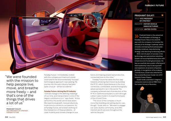 With over 20 years of success in the technology and automotive industries , Gulati is an accomplished executive with a track record of scaling businesses . He has successfully led a public offering and held leadership roles to drive growth and expansion at several companies globally . In recognition of his industry contributions , Gulati was selected for the coveted Business Insider list of EV Industry Power Players .