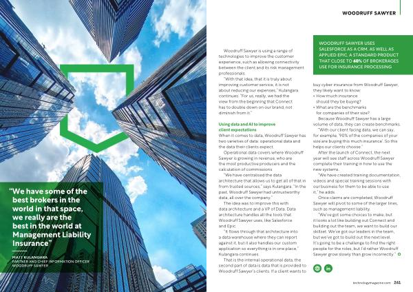 “ We ’ ve got some choices to make , but it looks a lot like building out Connect and building out the team , we want to build our skillset . We ’ ve got our leaders in the team , but we ’ ve got to build out the next level . It ’ s going to be a challenge to find the right people for the roles , but I ’ d rather Woodruff Sawyer grow slowly than grow incorrectly .” technologymagazine . com 261