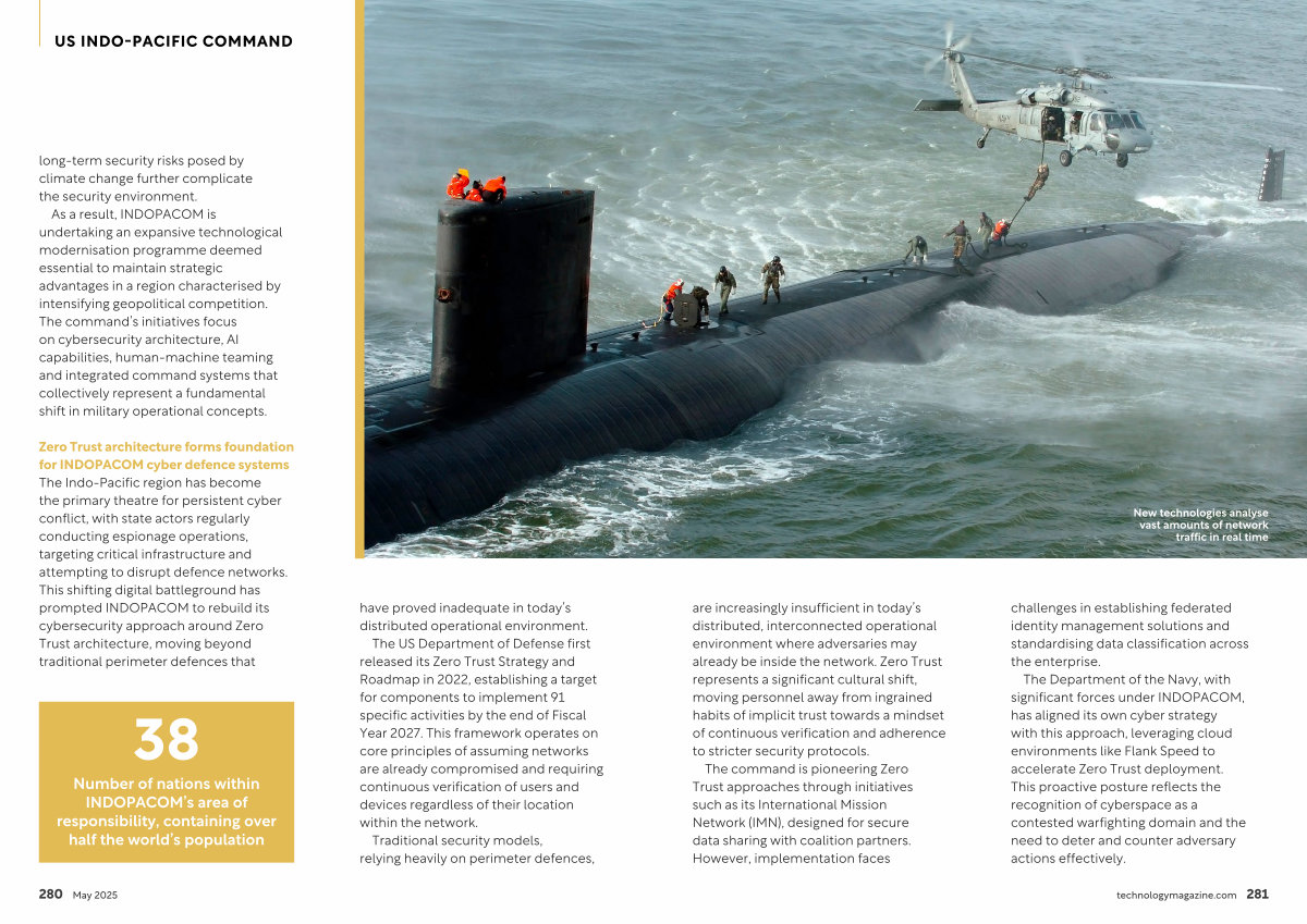 Zero Trust architecture forms foundation for INDOPACOM cyber defence systems The Indo-Pacific region has become the primary theatre for persistent cyber conflict, with state actors regularly conducting espionage operations, targeting critical infrastructure and attempting to disrupt defence networks. This shifting digital battleground has prompted INDOPACOM to rebuild its cybersecurity approach around Zero Trust architecture, moving beyond traditional perimeter defences that