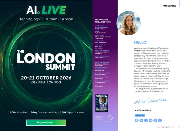 Welcome to the May issue of Technology Magazine and my first as Editor. The impact of AI continues to be a hot topic across every industry and walk of life. It seems the AI boom is still going strong, especially considering Gartner’ s prediction that worldwide AI spending will reach a staggering US $ 2.5tn this year.