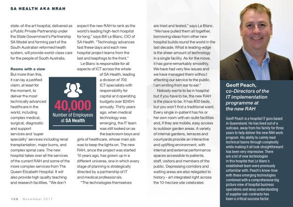 Le Blanc is responsible for all aspects of ICT across the whole of SA Health , leading a division of 700 ICT specialists with responsibility for capital and operating budgets over $ 240m annually . Thirty years ago , when medical technology was emerging , the IT team was still looked on as the backroom boys and girls of healthcare , whose main job was to keep the lights on . The new RAH , since the project was started 10 years ago , has grown up in a different universe , one in which every stage of planning is strategically directed by a partnership of IT and medical professionals .