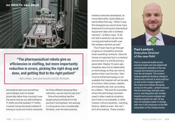Paul is a seasoned health service executive leader and was tasked with overseeing the activation of the new hospital and transitioning services from the old hospital . This involved leading significant business change in almost every element of work practices as well as the complex logistics of the actual move without disrupting services to the public . Lambert ensured that the technology elements were core to , and integrated with , broader hospital work process redesign and training programs for staff . He has been an exemplary leader of change , with over 6,000 employees at the RAH being taken on this change journey .