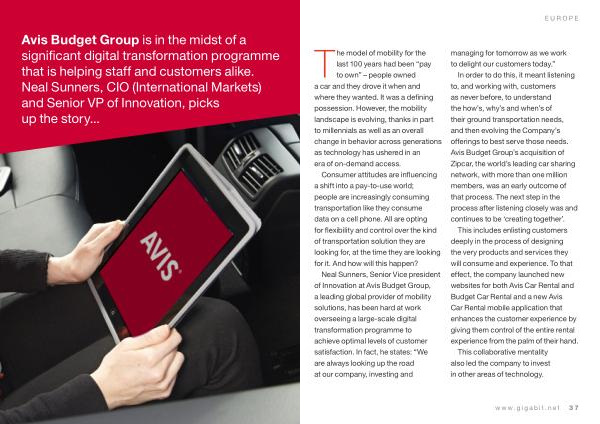 Neal Sunners , Senior Vice president of Innovation at Avis Budget Group , a leading global provider of mobility solutions , has been hard at work overseeing a large-scale digital transformation programme to achieve optimal levels of customer satisfaction . In fact , he states : “ We are always looking up the road at our company , investing and managing for tomorrow as we work to delight our customers today .”