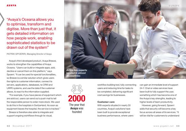 “ Avaya ’ s Oceana allows you to optimise , transform and digitise . More than just that , it gets detailed information on how people work , enabling sophisticated statistics to be drawn out of the system ”