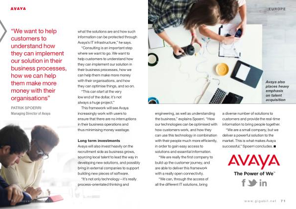 Avaya also places heavy emphasis on talent acquisition engineering , as well as understanding the business ,” explains Spoerri . “ How our technologies can be optimised with how customers work , and how they can use this technology in combination with their people much more efficiently , in order to gain easy access to solutions and essential information .