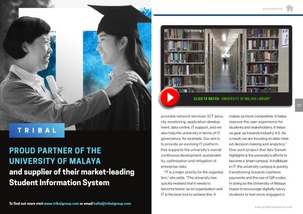 “ IT is a major priority for the organisation ,” she adds . “ The university has quickly realised that it needs to become leaner as an organisation and IT is the best tool to achieve this . It makes us more competitive . It helps improve the user experience for students and stakeholders . It helps us gear up towards Industry 4.0 . As a result , we are focusing on data-related decision making and analytics .” One such project that Abu Samah highlights is the university ’ s efforts to become a ‘ smart campus ’. A trailblazer in IT , the university campus is quickly transitioning towards cashless payments and the use of QR codes . In doing so the University of Malaya hopes to encourage digitally-savvy students to feel more engaged in