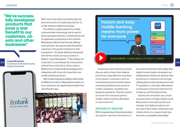 The USSD is a global system for mobile communication technology that is used to send messages between a mobile phone and an application programme in the network . Mkandawire affirms that through utilising such software , the app provides Ecobank ’ s customers with greater freedom for their transactions . “ Ecobank Malawi is integrated with all the mobile money providers in Malawi ,” says Mkandawire . “ This enables our customers to seamlessly do transactions without time restrictions . Every bank in Malawi has a mobile banking strategy and is integrating with those who have their own mobile banking products .”